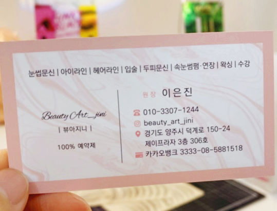 얼마 전에 올케가 반영구 문신을 전문으로 하는 토탈 뷰티샵을 양주시 덕계로에 오픈했습니다.
