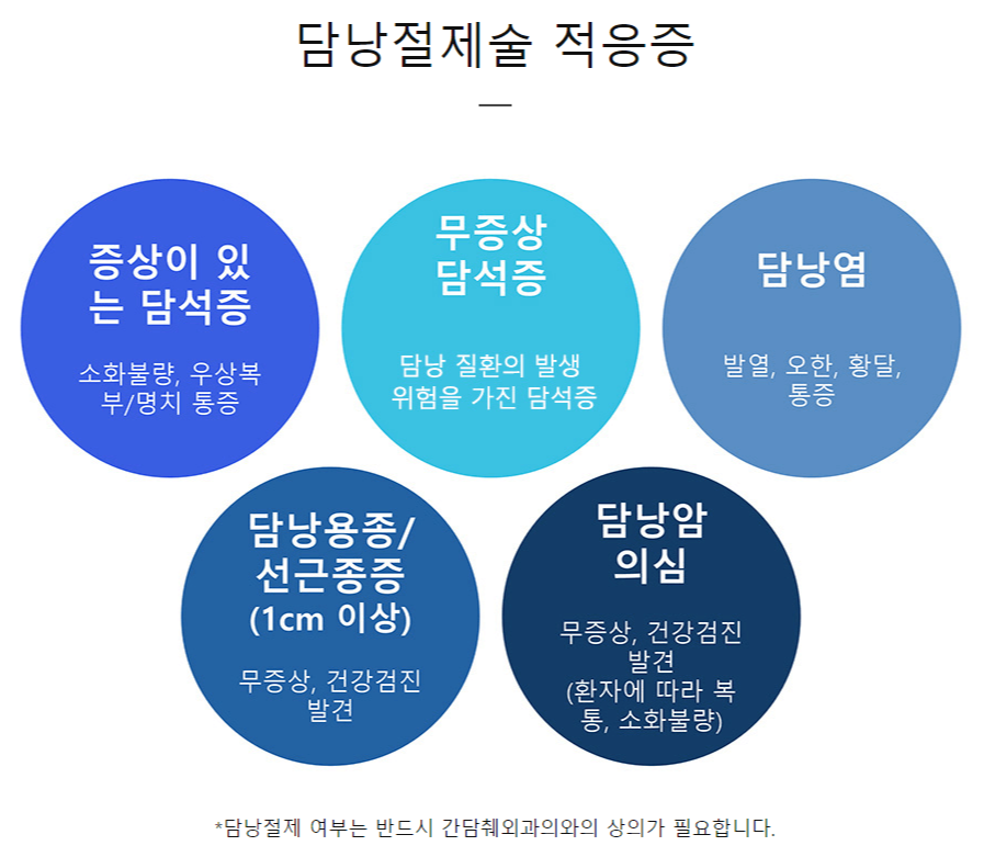 담낭절제술은 담낭선근종증뿐만 아니라 담석증이나 담낭염, 담낭 폴립 등 담낭의 여러 가지 질환이 생겼을 때 시행하는 외과적 수술로