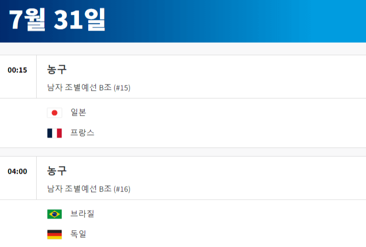 - 2024 파리올림픽 축구/농구/양궁/핸드볼 등 인기 종목 일정(한국시간)